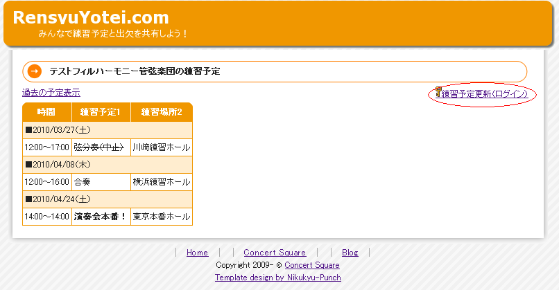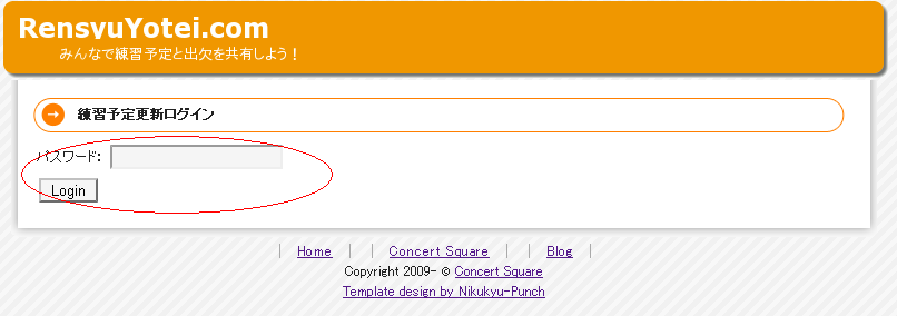 2)本登録時に入力したパスワードを入力し、Loginボタンを押してください。ログインが成功すると、練習予定画面に戻ります。
